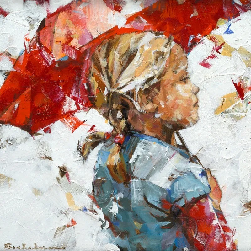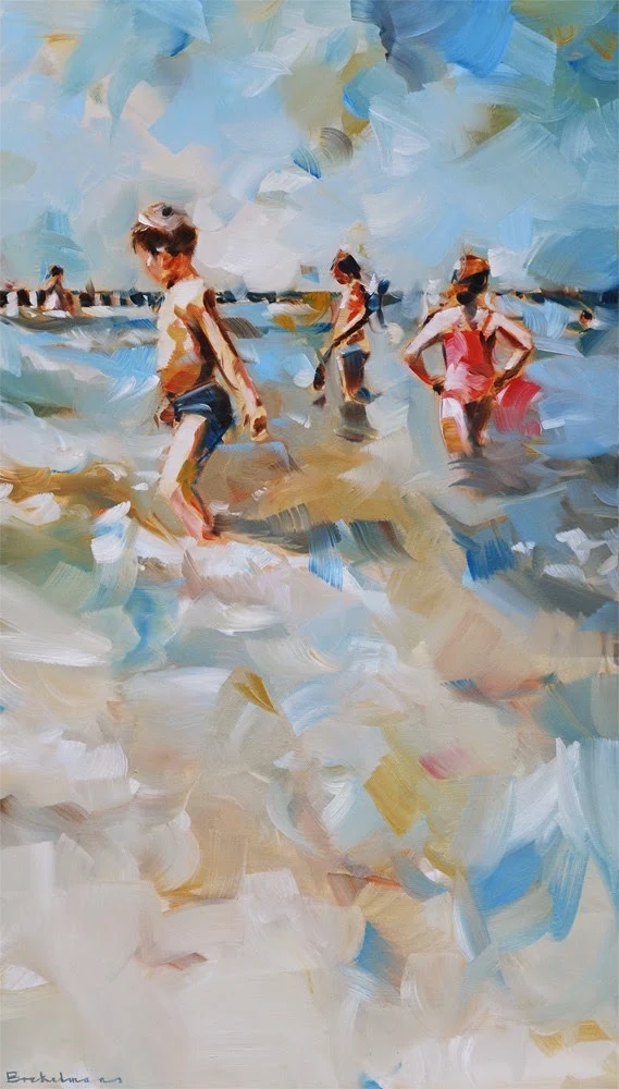 As a painter, I do not cling to the same theme, but I'm working on a variety of subjects. In my work, people, children, beach scenes, animals, movement, dance, sports and portrait recurring topics.