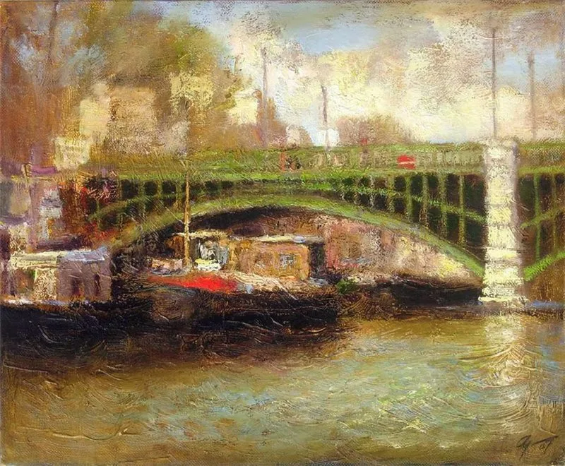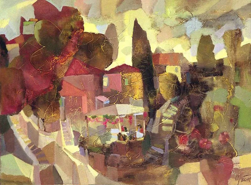 However the artist doesn’t create antropomorphous phantoms. His actual “characters” are energy of light, colour, an exquisite line and harmony of composition. He isn’t involved in authentic object depicting. He dematerialises spatial and air perspective.