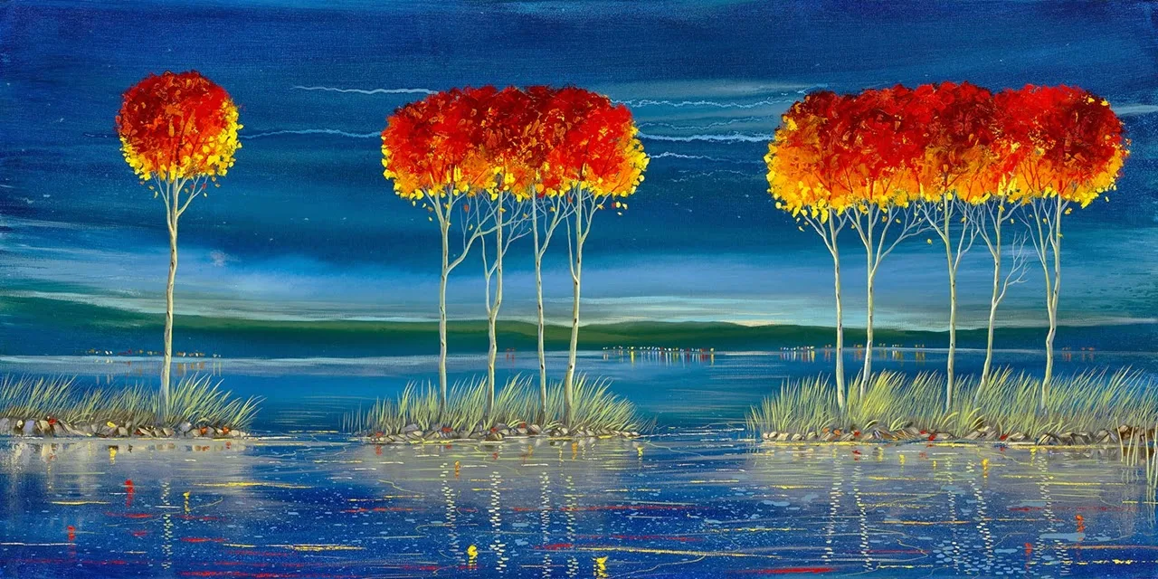 After exploring different painting styles and themes, he found tremendous fulfillment creating contemporary landscapes conjured from the stunning horizons witnessed during his travels.