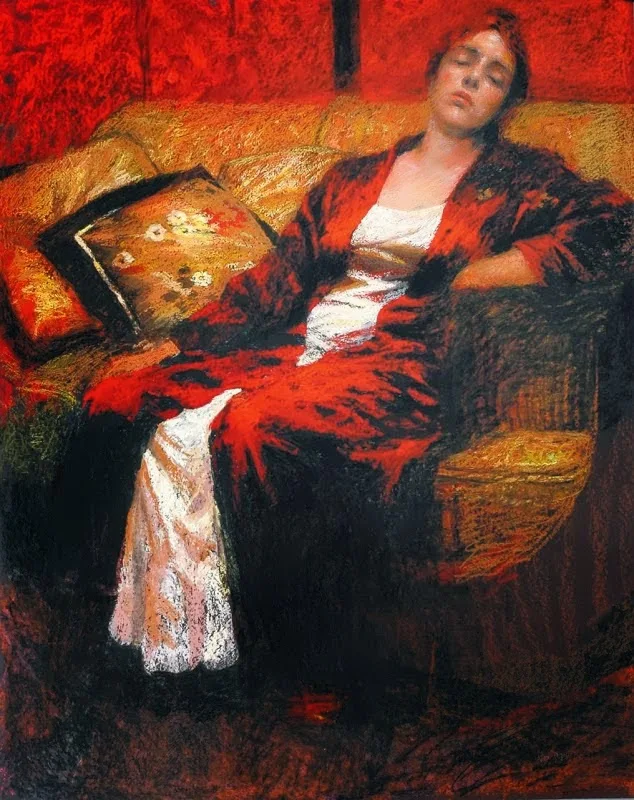 Her rich and textured pastels convey her emotion and love for this medium creating refreshing and strong compositional work, which is sensitive to the subject matter.