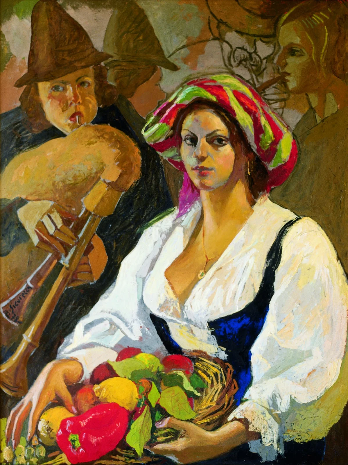 He works both mornings and afternoons, often devoting first energies to harder works as the naked human figures. In the living room the walls are covered with framed paintings, while others are simply placed in the corners. It is here that are received friends and admirers. It is of this period the groups of young people with musical instruments that the artist calls concerts, vigorous still lives and some outside scenes.