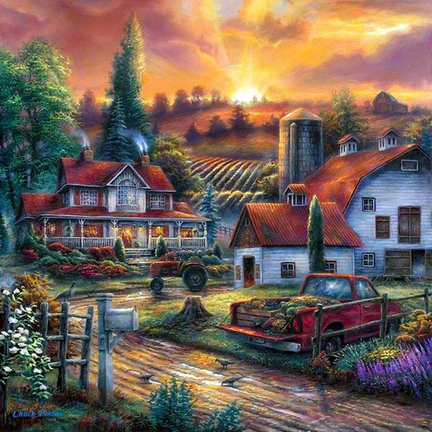 Whether it's the depiction of friendly communities, times past by, or the grandeur of the countryside, Chuck wants to bring you to the place where you can feel the water flowing, hear the birds chirping, and almost touch the soft grass or colorful blooms, so that you can sit back, relax and dream.