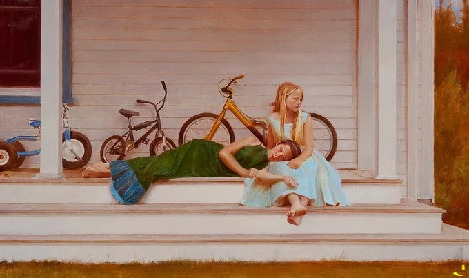 In 2000 David and this funny-hatted girlfriend (okay, she was no longer wearing the hat) moved to Mount Desert Island, Maine. While most artists move to Maine to focus on their landscape painting, David moved indoors (a result of the cold winters, perhaps) to focus on figures and interiors.