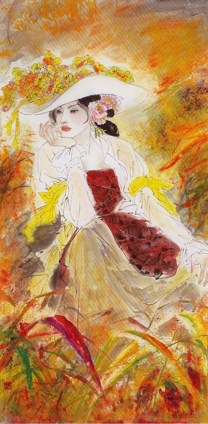 I suoi dipinti mescolano la cultura occidentale a quella orientale mediante la linea di disegno tradizionale cinese ed il colore della pittura occidentale creando uno stile personale.