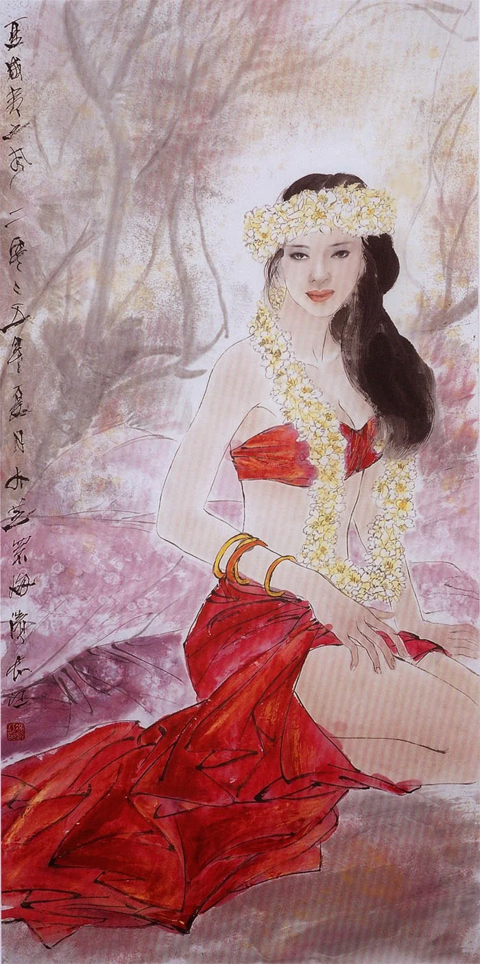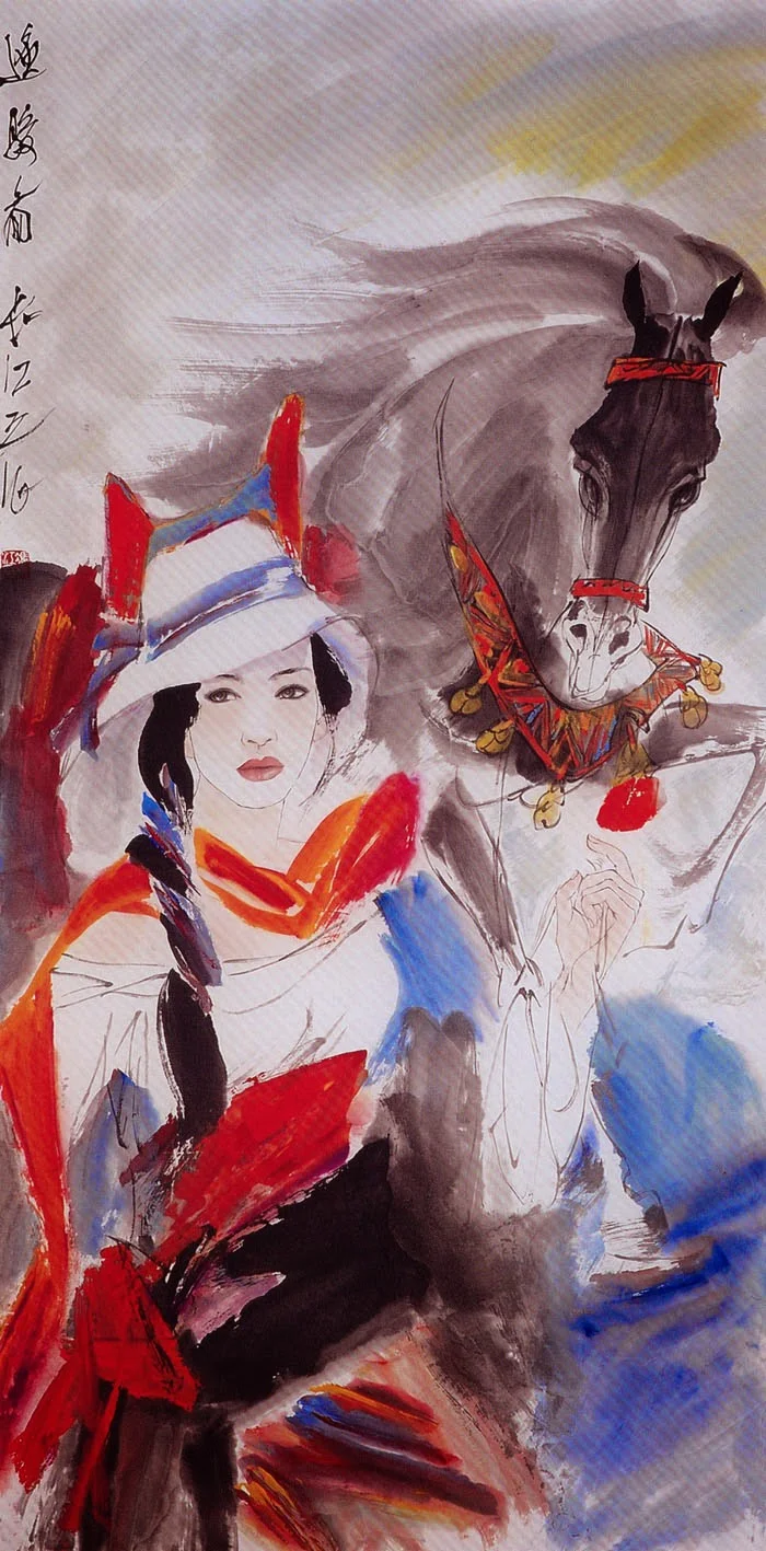 Feng's works integrated the rhythm of the traditional lineal approach and the Western spectacular colour approach. After his successful debut, "Dance of Red Silk" Feng produced numerous modern meticulous brushwork and heavy colour paintings that earned him critical acclaim in China.