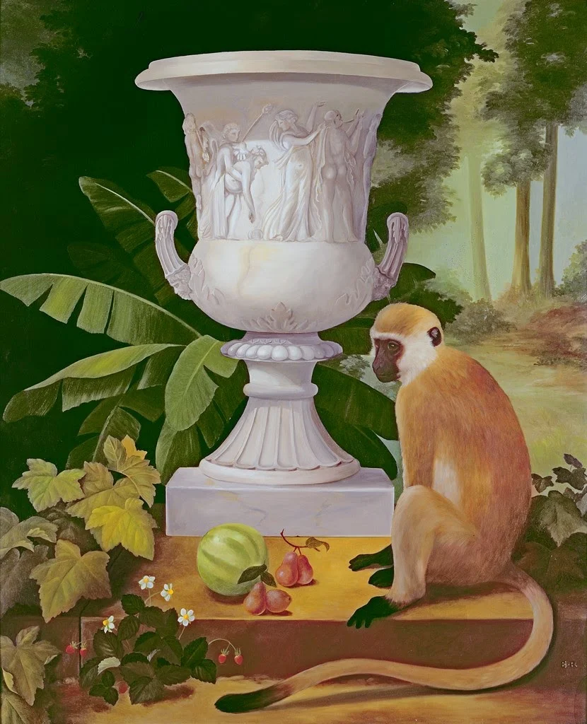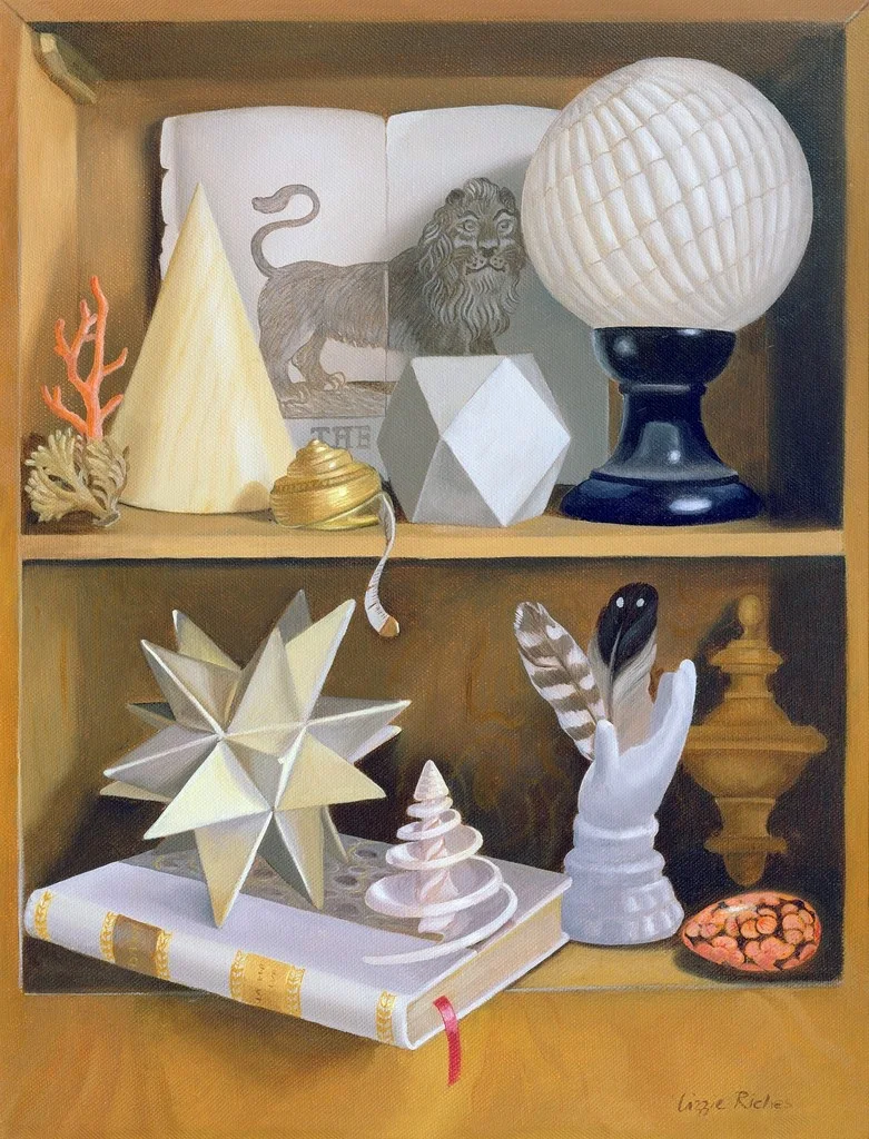 Mentre la maggior parte dei dipinti di "Golden Caroline" erano ritratti, Lizzie è ugualmente ispirata dalla natura morta e da vari aspetti del mondo naturale - non essere mai sorpreso di vedere un elefante su una palla, una cameriera che corre con un cervo o persino un carlino con il suo palazzo personale - l'immaginazione di questo artista sembra illimitata!