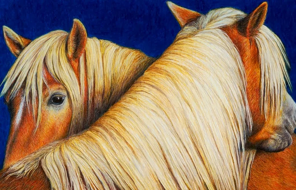 American artist Pat EricksonShe is well known for her highly detailed portrayal of both horses and other wildlife in watercolor and prismacolor pencil.