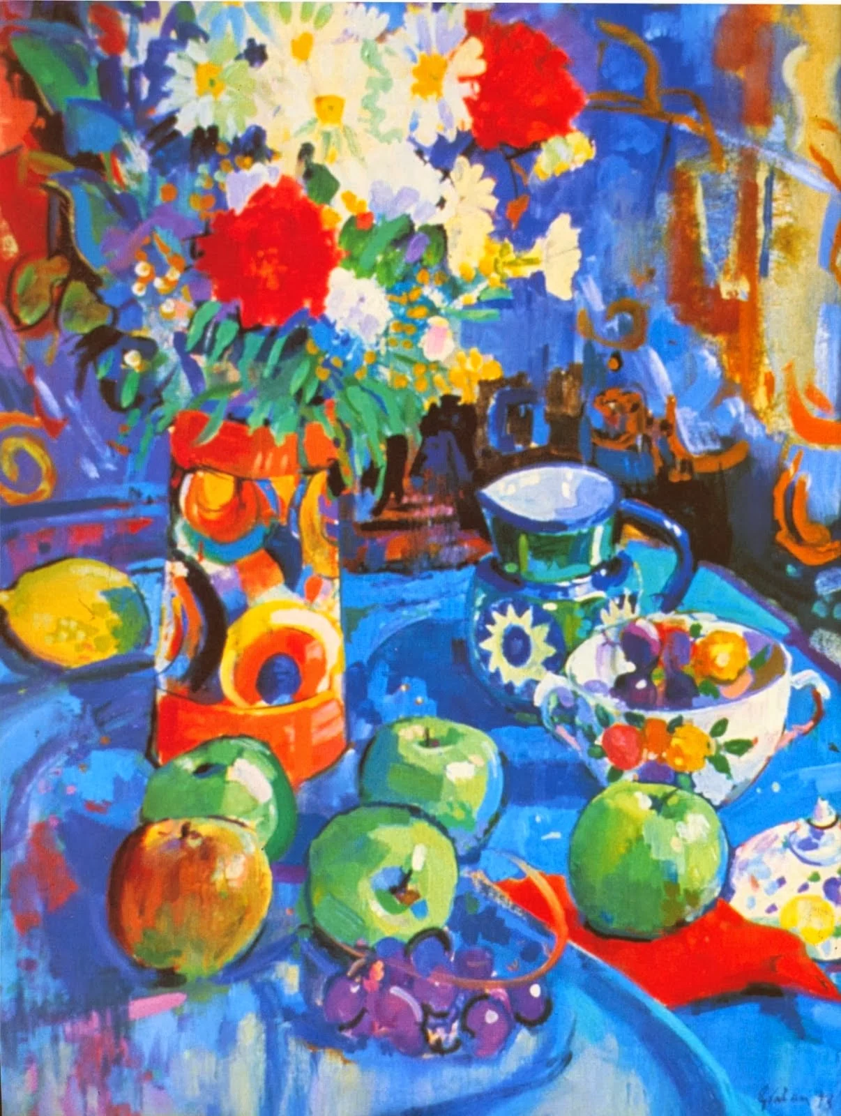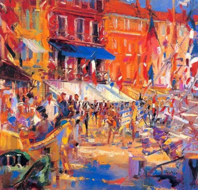 His work is often related to the Modern Scottish School but Peter has a flamboyant style which is unique, detailed brush work combined with loose fluid strokes creating vibrant contrasts of pure colour, line and tone. For earlier works by Peter Graham Roi see: Part 2 also.