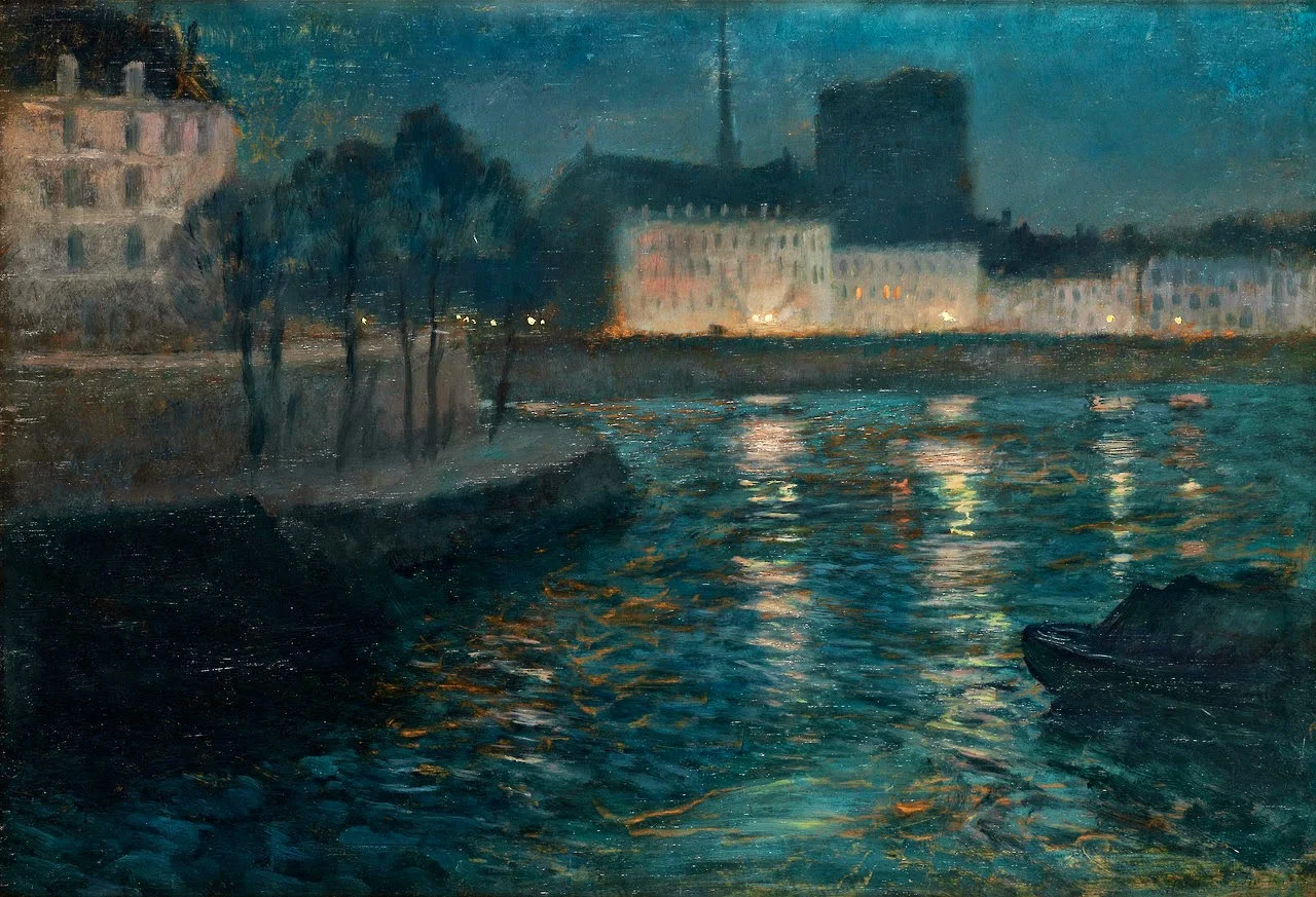 Whether he was concen­trating on the evening with the glow of moon­light upon the Seine River or on a young woman in a brightly colored flower garden at midday, each scene is depicted with great detail and with specific attention to a realistic portrayal of the landscape.