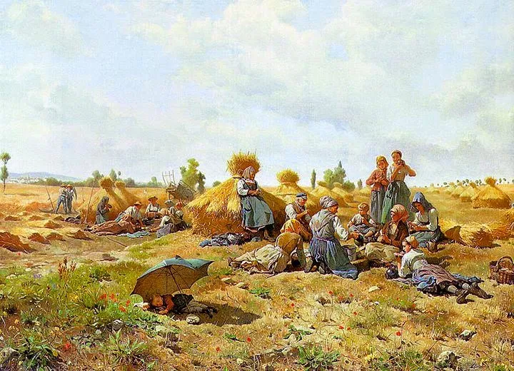 As opposed to Millet, Knight focused on depicting the rural classes during their happier moments. Other important influences were Bastien-Lepage, with whom he is most often compared and Jules Breton for his Plein-air style.