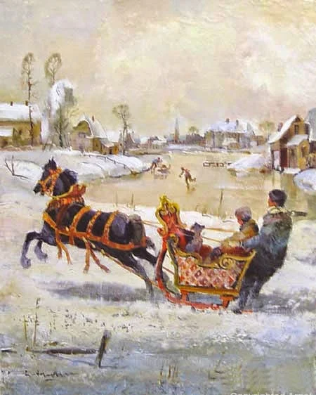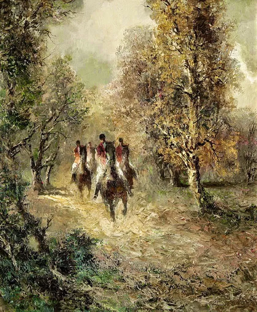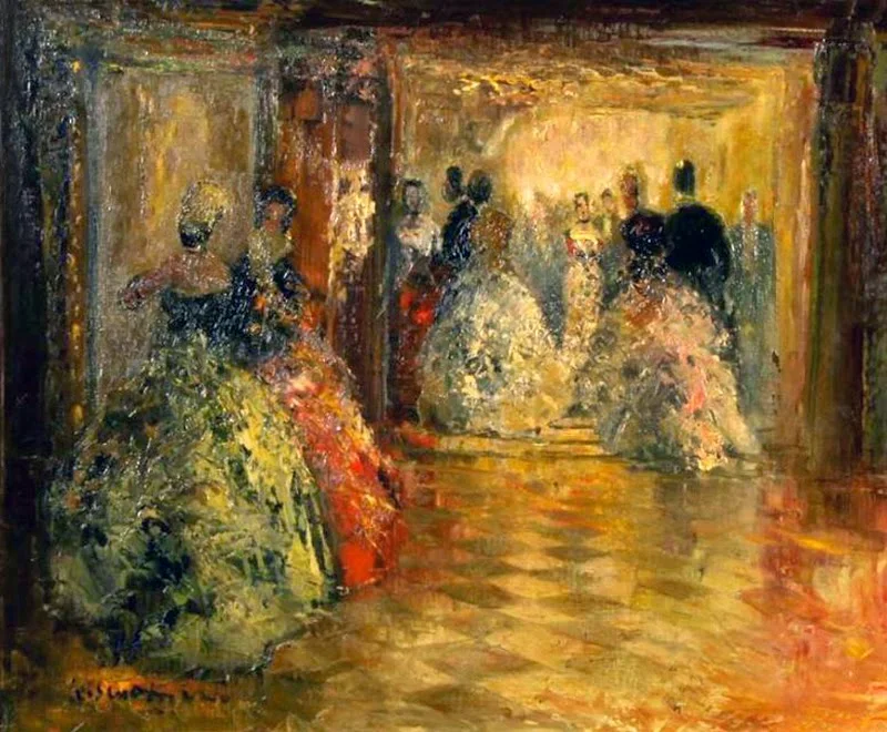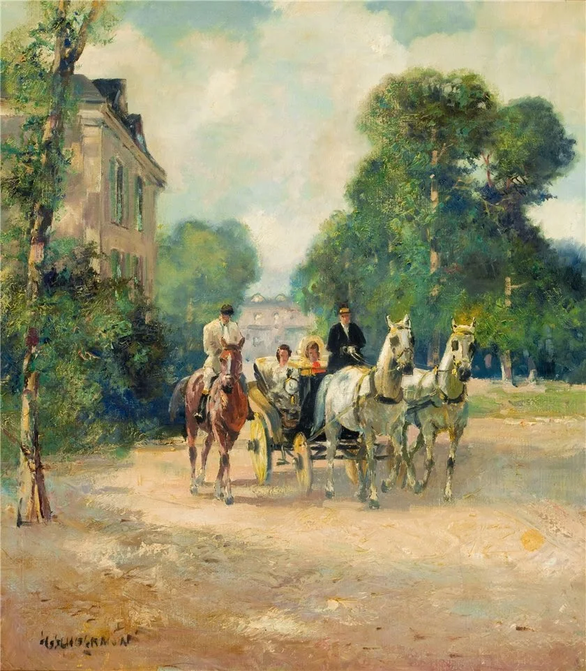 The painting subject matter had a wide range from the Tegernsee lake picnic scenes to horse and carriage subjects as well as his opera-ballrooms.