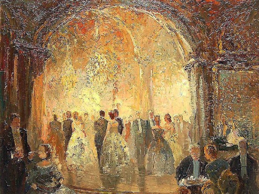 The painting subject matter had a wide range from the Tegernsee lake picnic scenes to horse and carriage subjects as well as his opera-ballrooms.