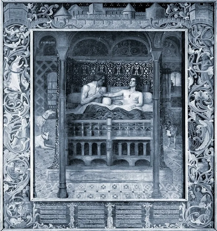 It was during the 1890s that Agnes Slott-Møller became convinced that art should have a message. It was her opinion to express patriotism and historical awareness, particularly inspired by the Danish folk songs. In addition, she collected motifs from Danish history and medieval art, and she was stylistically inspired by the British Pre-Raphaelites and Italian paintings from the 13th to the 15th century.