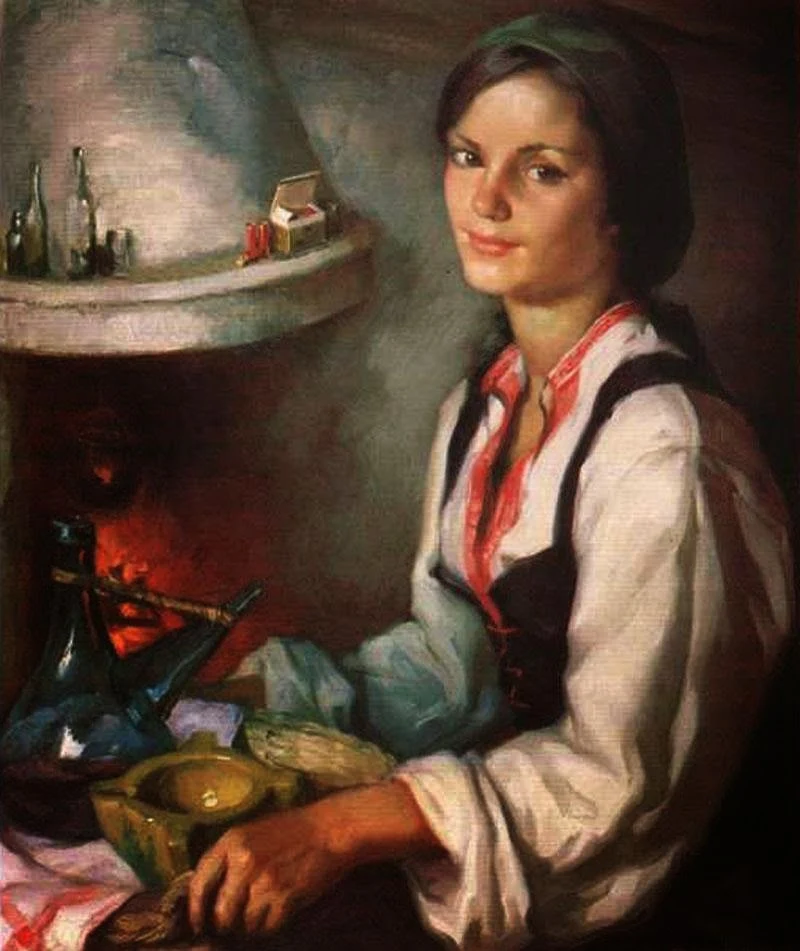 Il pittore Spagnolo Francisco Ribera Gomez [1907-1990] iniziò a lavorare presso lo studio del padre, José Ribera Blázquez, dove fu influenzato da romantici quali Madrazo, Rosales e Esquivel, e ha poi studiato al San Fernando Reale Accademia di Belle Arti con docenti del calibro di Moreno Carbonero, Julio Romero de Torres e Mateo Inurria. Ha completato la sua formazione dopo due anni con una borsa di studio a El Paular e Granada.