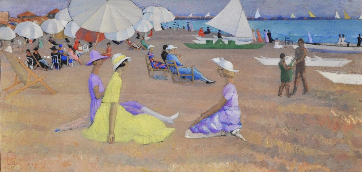 Moses Levy conduce la sua ricerca artistica con occhio attento ed indagatore, ma discreto, quasi a non voler disturbare l’allegria dei personaggi, spesso villeggianti, da lui ritratti. Nonostante abbia viaggiato molto, Tunisi, Parigi e Viareggio restano per lui i principali punti di riferimento, così come l’incanto del paesaggio mediterraneo che non lo abbandona per tutto il corso della sua carriera. Partendo dalla tradizione pittorica toscana, in particolar modo post-Macchiaiola, si affaccia all'arte francese e si lascia catturare dalla luce delle spiagge versiliesi. Con l’approfondirsi delle sue indagini coloristiche e l’arricchirsi della sua esperienza parigina, la sua pennellata si fa più vibrante, accesa, delineando corpi e profili che sembrano dotati di movimento. I temi più cari all'artista sono quelli legati al suo vissuto personale, ritroviamo quindi le spiagge della Versilia unite alle scene di vita ed ai colori di Tunisi. Oltre alla pittura, altra grande passione è per Levy la grafica, attraverso la quale propone immagini intense, che, partendo dalla tradizione di Giovanni Fattori, si rivolgono verso le ricerche moderne e francofone, influenzato dalle opere grafiche di Lorenzo Viani, sperimentando un innovazione del linguaggio grafico in relazione alla pittura.
