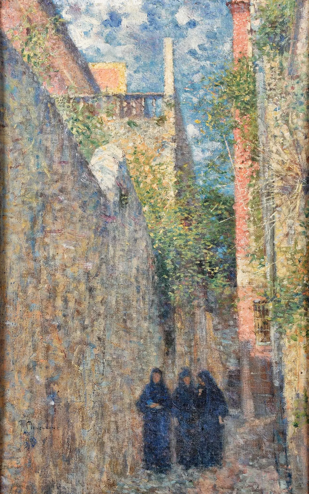 Donde la sua prima maniera, schiettamente "Macchiaiola", rivelata alle esposizioni della Promotrice dal 1886-1891. Ma trasferitosi a Genova, il Nomellini si allontanò dalla tradizione toscana per cercare in esperienze divisionistiche maggiori mobilità di forma e vivacità di colore, ottenendo all'"Arte e Fiori" del 1895-96 un primo successo con Visioni di Liguria.