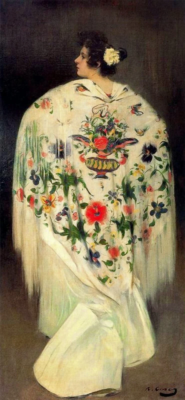 The next year he had a piece exhibited in Barcelona at the Sala Parés, and in 1883 in Paris the Salon des Champs Elysées exhibited his portrait of himself dressed as a flamenco dancer; the piece won him an invitation as a member of the salon of the Société d'artistes françaises.