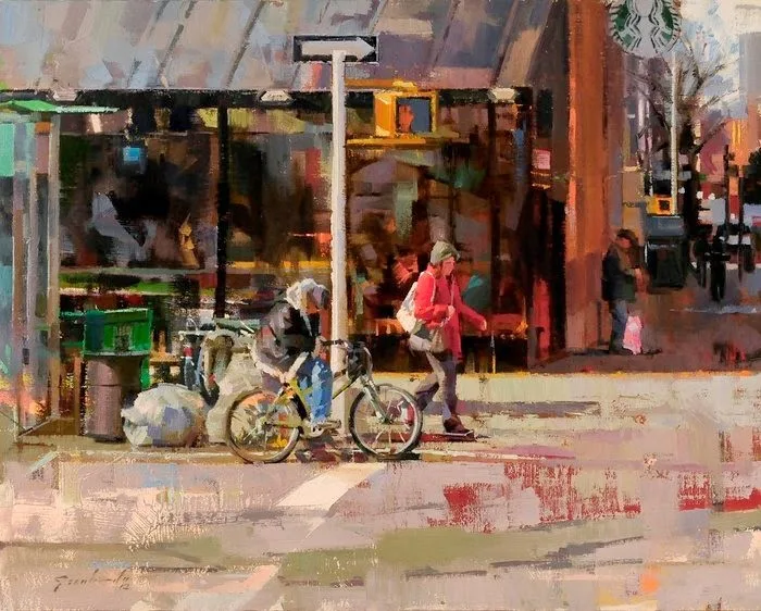 He looks beyond the usual physical make-up of the painting subject, to the relationships of its forms and colors, creating a compelling visual map in each painting.