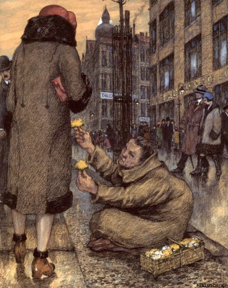 Baluschek left the arts university in 1893 and began to work as an independent artist, now focusing almost exclusively on social-class differences - which made him an outsider in the conservative arts scene of Wilhelmine Germany. Meanwhile he was reading the left-leaning works of Gerhart Hauptmann, Tolstoy, Ibsen, Johannes Schlaf und Arno Holz and was heavily influenced by the literature of Naturalism.