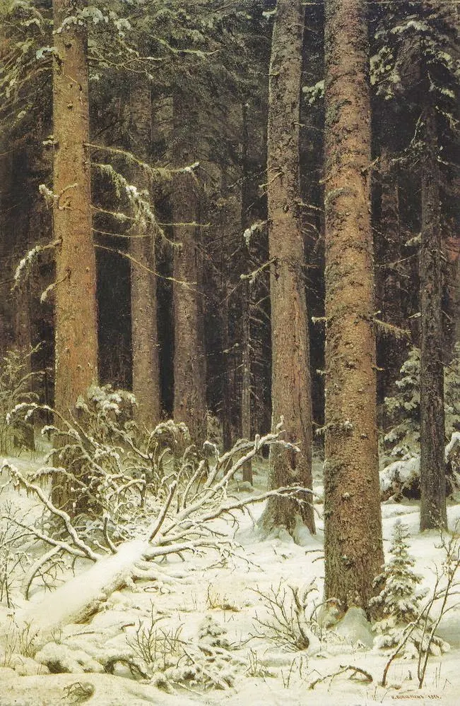 In the late 1880s Shishkin fell under the influence of new artistic currents and attempted to imbue his work with “atmosphere” (Morning in a Pine Forest, 1889), but even the air in such paintings gives an impression of solidity.