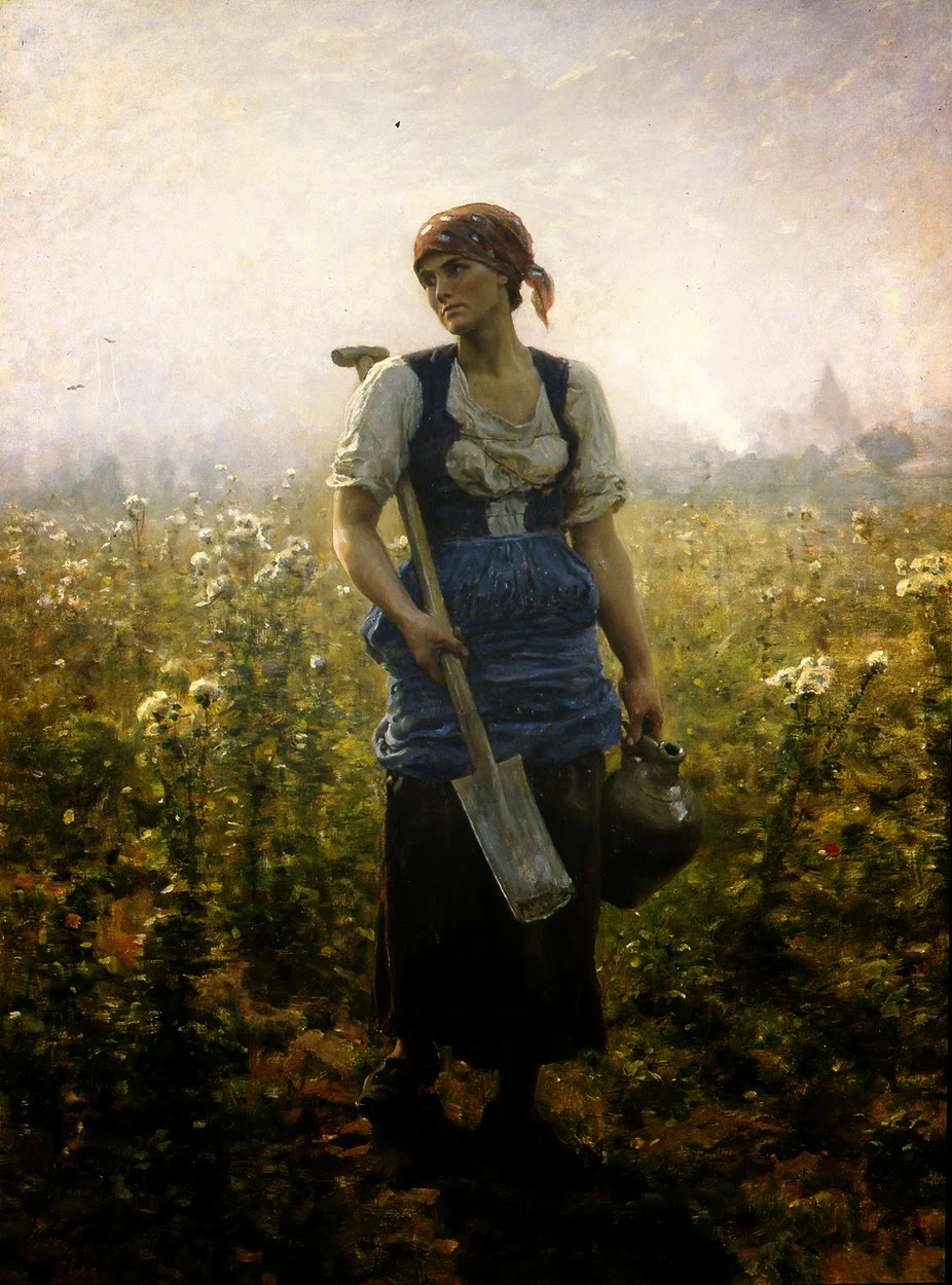His poetic renderings of single peasant female figures in a landscape, posed against the setting sun, remained very popular, especially in the United States.