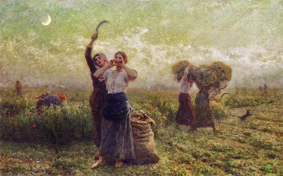 His paintings are heavily influenced by the French countryside and his absorption of traditional methods of painting helped make Jules Breton one of the primary transmitters of the beauty and idyllic vision of rural existence.