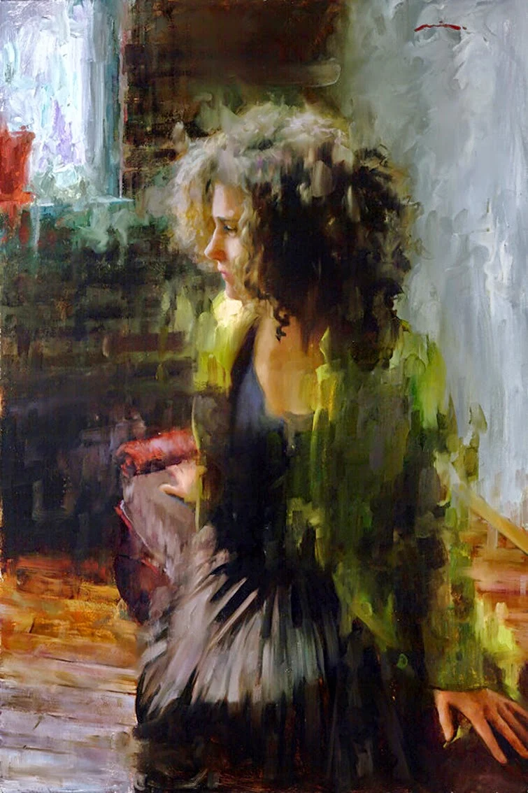 "When I was in school in Italy, I was constantly told I was better at getting an overall effect than I was at achieving detail. This was seen as a weakness, and I was also told I was a temperamental painter. For years I thought these two 'defects' would hurt my work. In the past year, I've really worked on making my vulnerabilities my strengths. Instead of denying that I am an erratic painter and that I like big, overall effects (like mood, for instance), I decided to accept those parts of me and even play them up in these paintings".