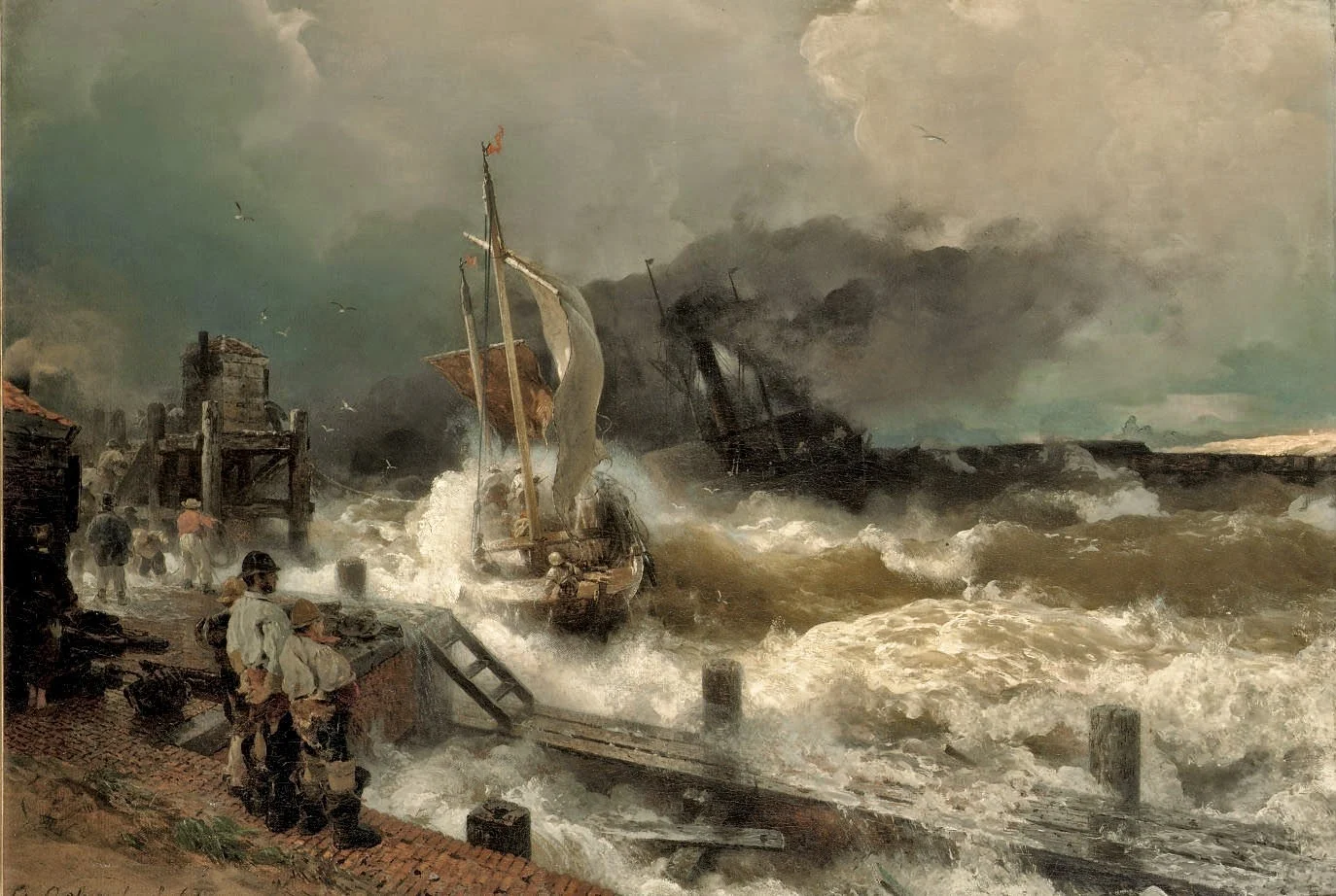His pictures of the stormy North Sea, of Dutch canal scenes, and of Rhineland villages contrasted favourably with the sentimental landscapes of his contemporaries.