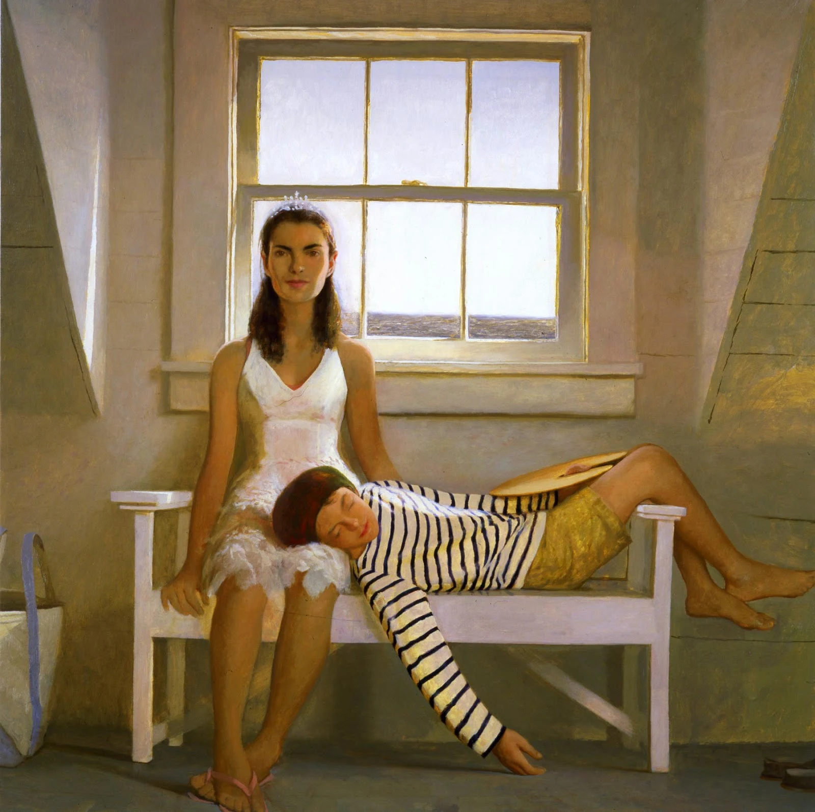 Family and friends are the cast of characters who appear in his dreamlike narrative works. Although the scenes are set around his childhood home in Georgia, his island summer home in Maine, his home in Pennsylvania or the surroundings of his studio and residence in Washington State, they represent a deeper, mythical concept of the archetypal, universal home" - Tom Butler, excerpt from the book Bo Bartlett, Heartland