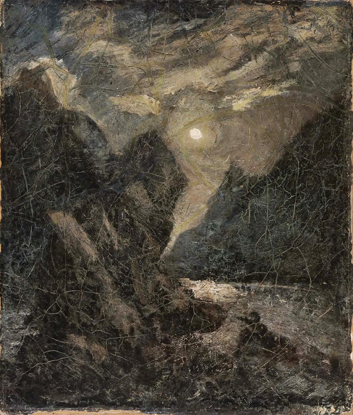 By 1900 his powers were impaired, and he injured some of his earlier paintings with misjudged reworkings. Because of his eccentric technical methods, a number of Ryder’s paintings have suffered from rapid deterioration. Toward the end of the artist’s life, his native misanthropy increased, and he died an impoverished recluse, tended only by his few remaining friends. / © Encyclopædia Britannica, Inc.