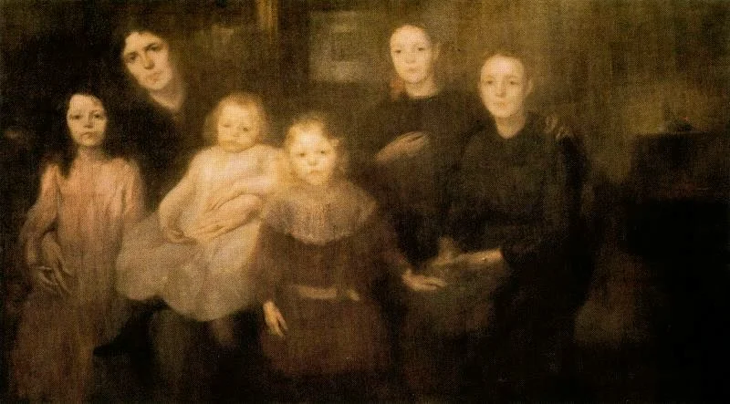 Eugène Anatole Carrière (1849-1906) was a French Symbolist painter of the Fin de siècle period. His paintings are best known for their brown monochrome palette. He was a close friend of the sculptor Rodin and his work influenced Picasso. Some see traces of Carrière's monochrome style in Picasso's Blue Period.