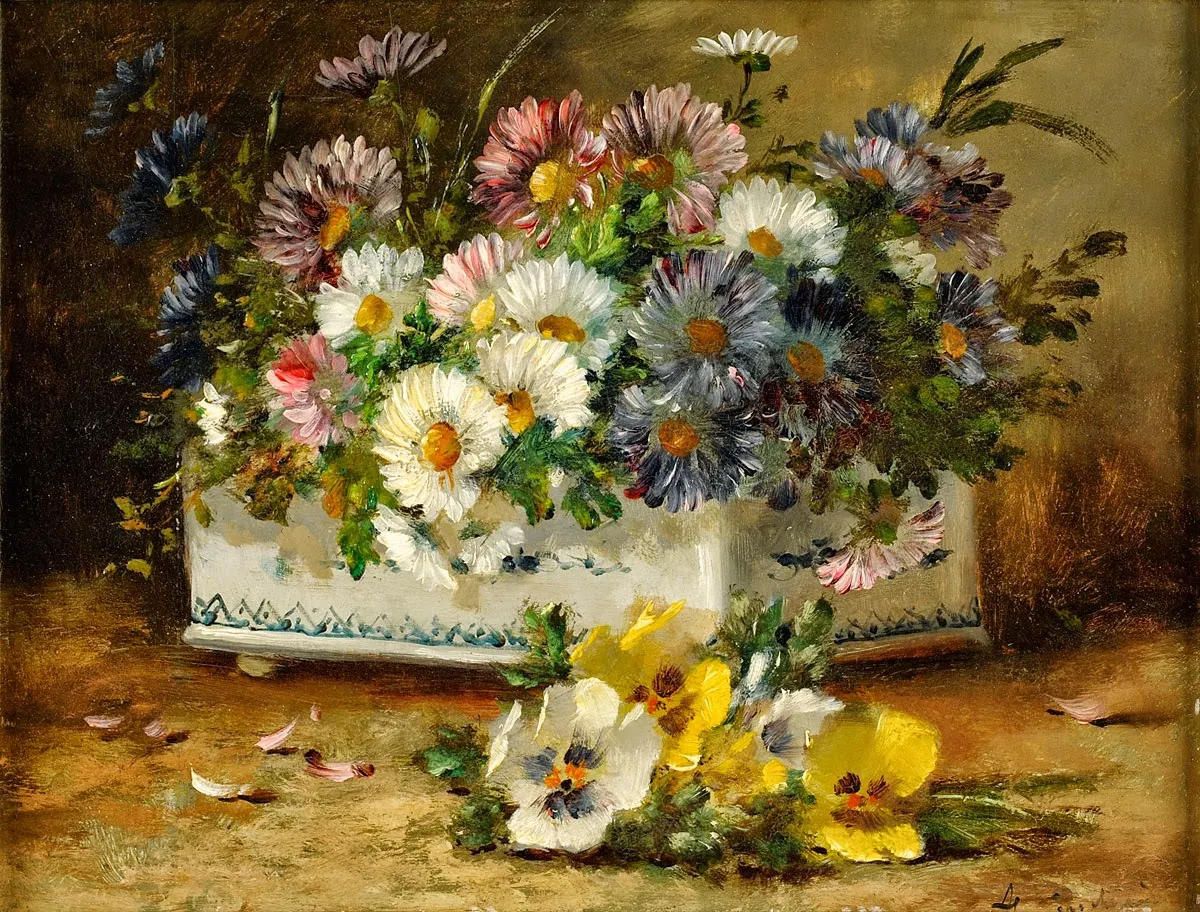 Cauchois received several commissions for these larger works and was commissioned by the School of the 7th district to paint four decorative panels representing the flowers of the four seasons.