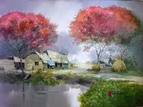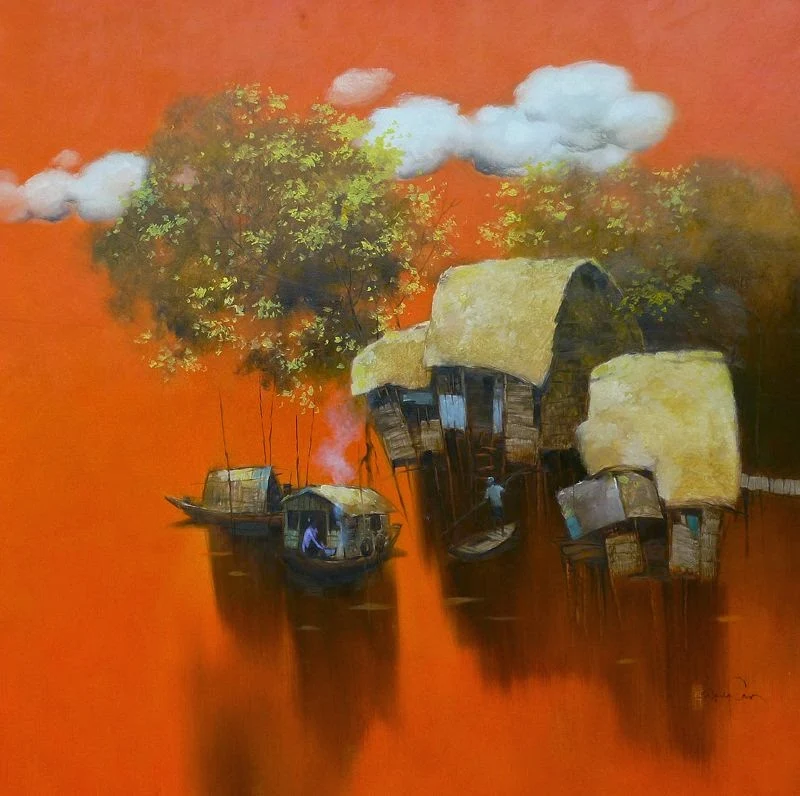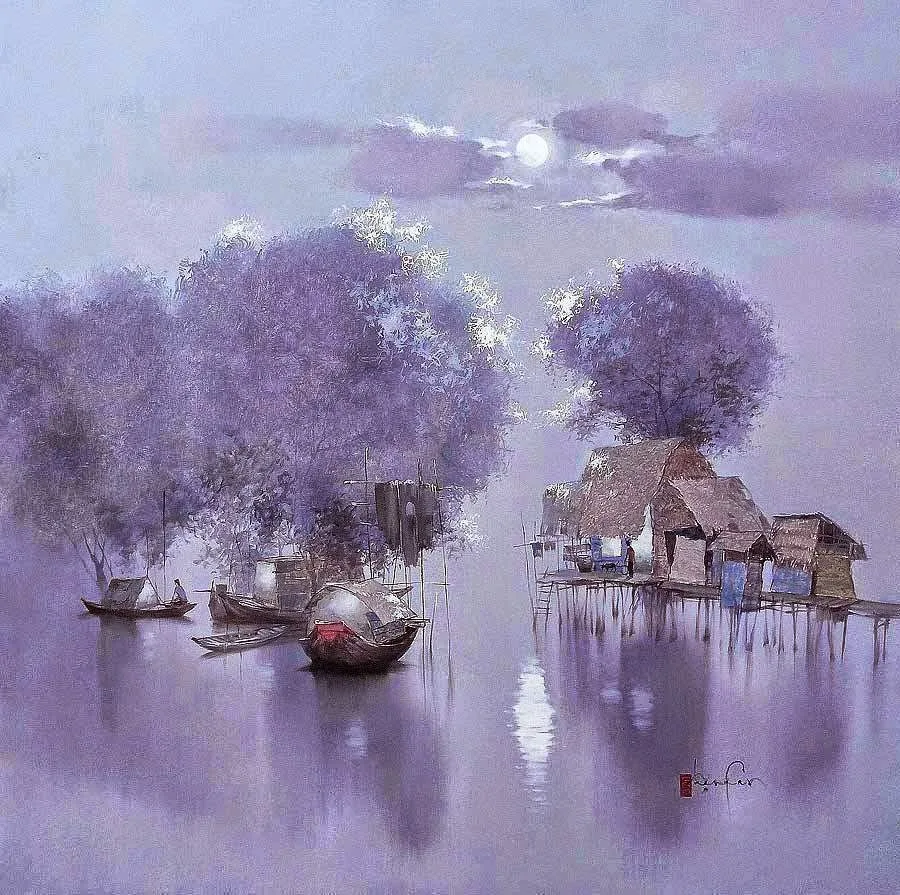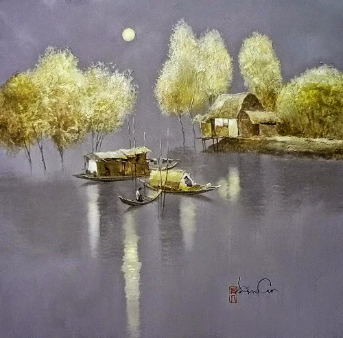 His style of painting is not only very soft, deep but also very attractive in the peacefulness of Mekong Delta. His paintings bring a full and semplice dream, to be imbrued with poetry, high-faluting but also reality. The main subject throughout his works are the landscapes in peaceful countryside of Mekong delta, the school girl in Aodai, the daily changing of local residents. It’s really simple but also very lovely.