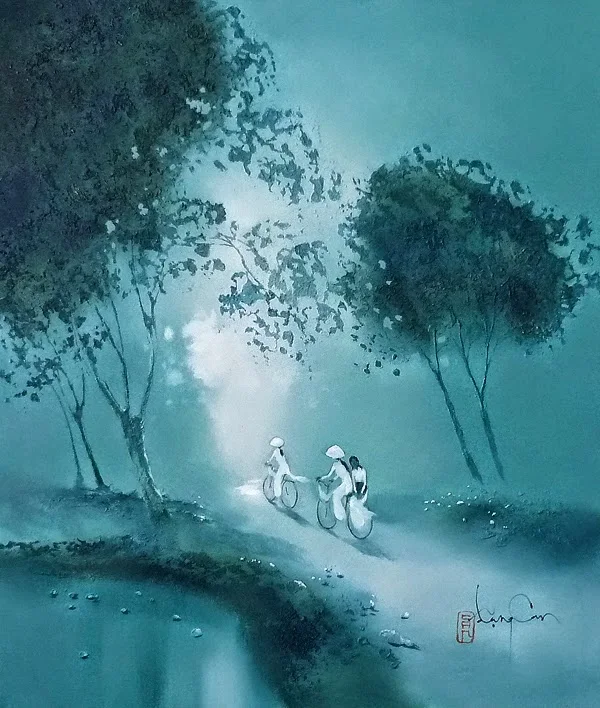 His style of painting is not only very soft, deep but also very attractive in the peacefulness of Mekong Delta. His paintings bring a full and semplice dream, to be imbrued with poetry, high-faluting but also reality. The main subject throughout his works are the landscapes in peaceful countryside of Mekong delta, the school girl in Aodai, the daily changing of local residents. It’s really simple but also very lovely.