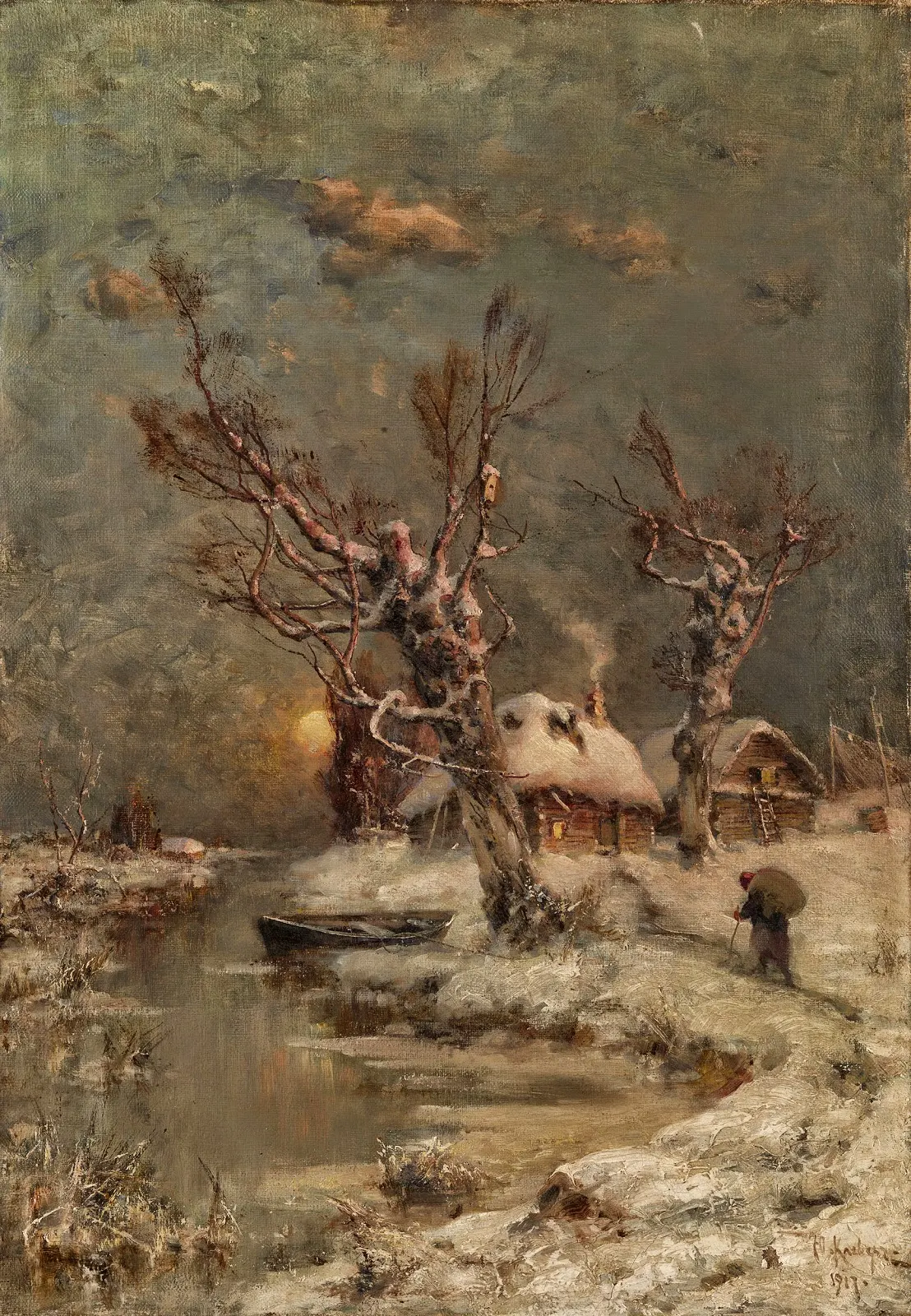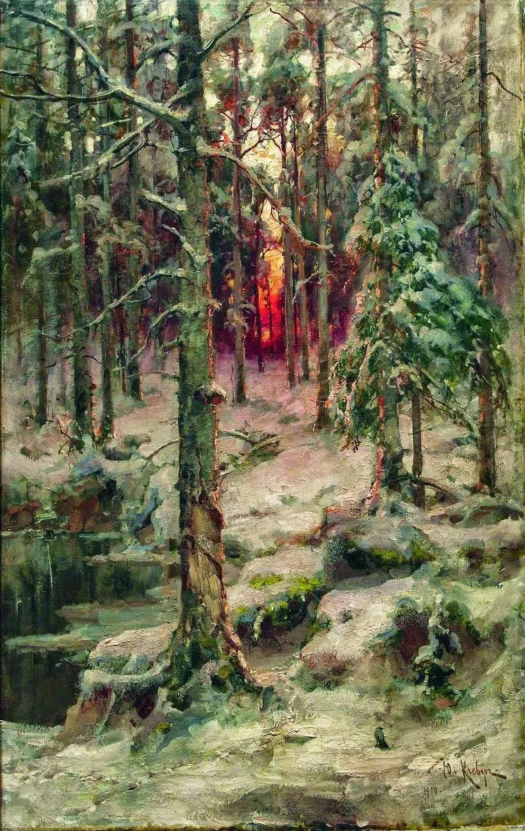 Юлий Юлиевич Клевер [Derpt, attuale Tartu, Estonia, 31 gennaio 1850 - Pietrogrado 1924] Pittore di paesaggi. Nel 1868, s'iscrive all'Accademia di Belle Arti di San Pietroburgo. Inizialmente, frequenta la facoltà di architettura e, dal 1870, il corso di paesaggio, sotto la guida di M. Vorob'ev e di M. Klodt. Nel 1876, ottiene il titolo di "pittore di primo grado". Nel 1878, viene nominato accademico e, nel 1880, professore. Dopo il 1890, si stabilisce per sette anni in Germania. È membro di alcune associazioni artistiche, tra cui la "Società degli artisti individualisti". Espone in Russia, Germania, Austria e Francia, in particolare a Parigi, nel 1878 e nel 1889. Vince una medaglia d'oro a Berlino, nel 1888. Dopo la rivoluzione, partecipa alla grande esposizione di Pietrogrado, nel 1919, e a quella di Kazan', nel 1920. Le sue opere sono esposte a Mosca nella Galleria Tret'jakov ed a San Pietroburgo nel Museo Russo.