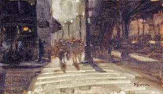 In between illustration assignments he painted and exhibited cityscapes, and continued his transition to becoming a full time painter after returning to the West Coast in 1996.