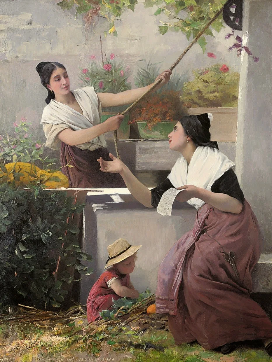 Auguste-Alexandre Hirsch (Lyon 1833 - Paris 1911) was an French🎨 Academic painter. Hirsch's artistic career was marked by diversity. Beginning in 1857, when Hirsh debuted at age twenty-four, the artist's early submissions to the Paris Salons included portraits as well as religious, genre🎨 and historical subjects. A visit to Morocco in 1870 inspired his mature period and its focus on the women in and around the community of Tetuán.