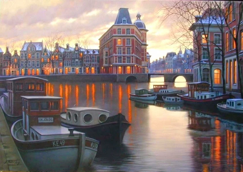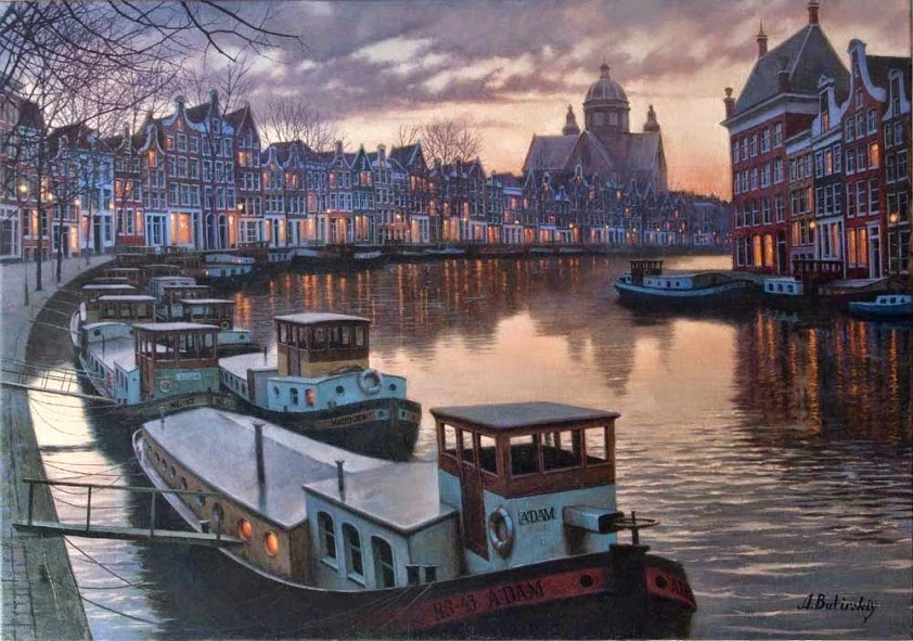 Certainly Alexei shares with us his emotions, his vision of life, in magnificent views of cities, countrysides, homes, and canals with a vitality that only a few great artists have been able to achieve.