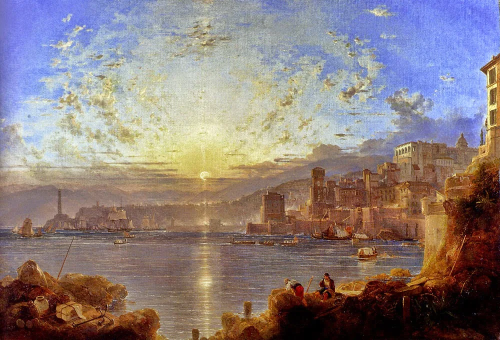 He was now painting panoramic Italian scenes, coastal landscapes set in Southern Italy, Capri, Naples, Amalfi, Sorrento, Palermo and views set in Venice his works suffused with a warm Mediterranean light and a shimmering silvery tone.