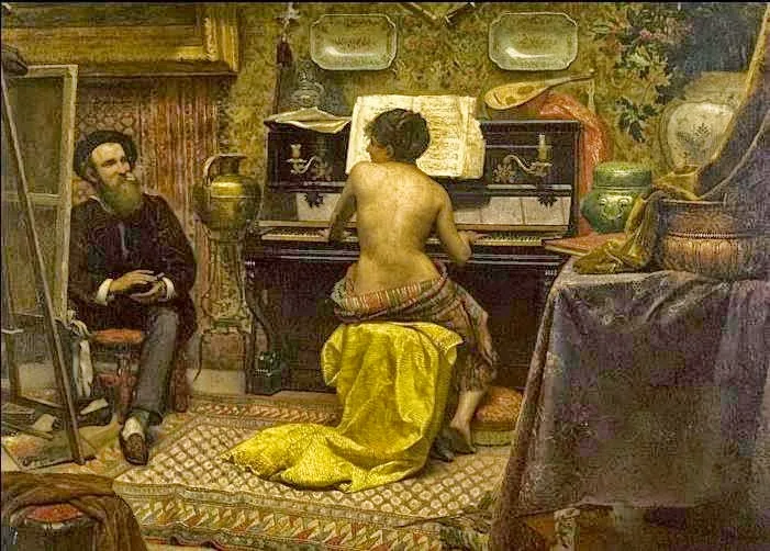 Paintings like “Stinging Smoke Grit” (1893), “Nuisance”, “Interrupted” (1894) and “Guitarist” (1899) show his desire to get further away from academic painting. His new style was very appreciated by the critics and one of his paintings, the ‘Departure of the Monsoon’, which was exhibited at the Academy in 1898, was honored🎨 with a gold medal.
