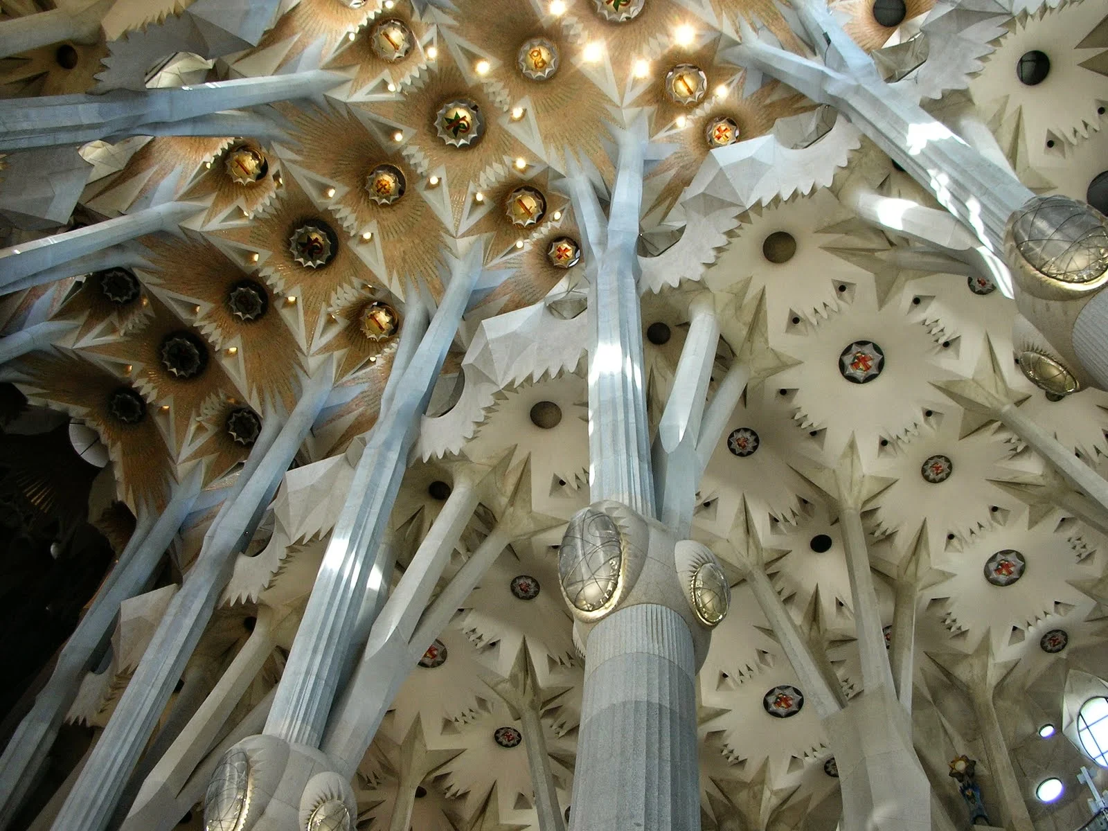 only one transept with one of its four towers was finished at his death), Gaudí equilibrated the cathedral-Gothic style beyond recognition into a complexly symbolic forest of helicoidal piers, hyperboloid vaults and sidewalls, and a hyperbolic paraboloid roof that boggle the mind and outdo the bizarre concrete shells built throughout the world in the 1960s by engineers and architects inspired by Gaudí. Apart from this and a similar, often uncritical, admiration for Gaudí by