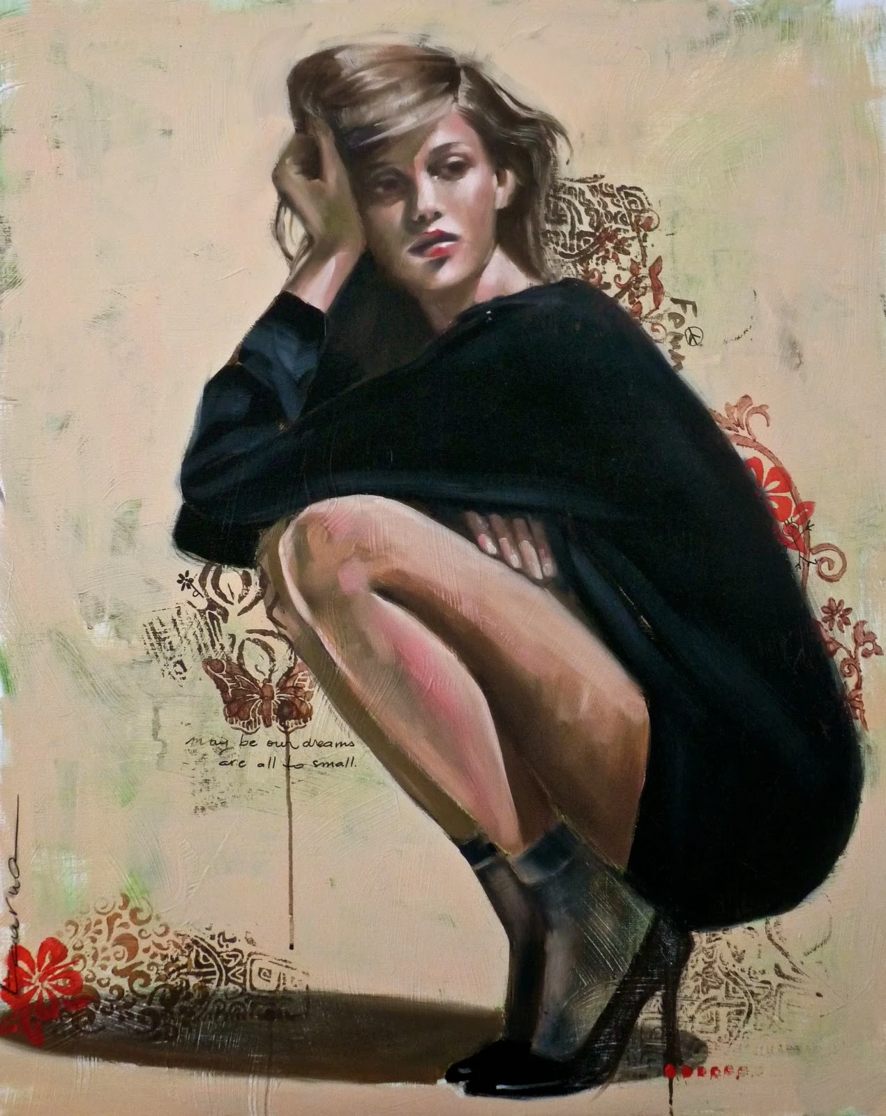 Taurua's paintings are as beautifully and as aggressively painted as they are sensually erotic. Her girls have a certain glamour that reminds her own life since she has been Miss France 1978 at the age of 18. Her palettes are so lush and vibrant that often you might find yourself getting lost in their smooth ungulations against his heavily textured and gessoed canvases.