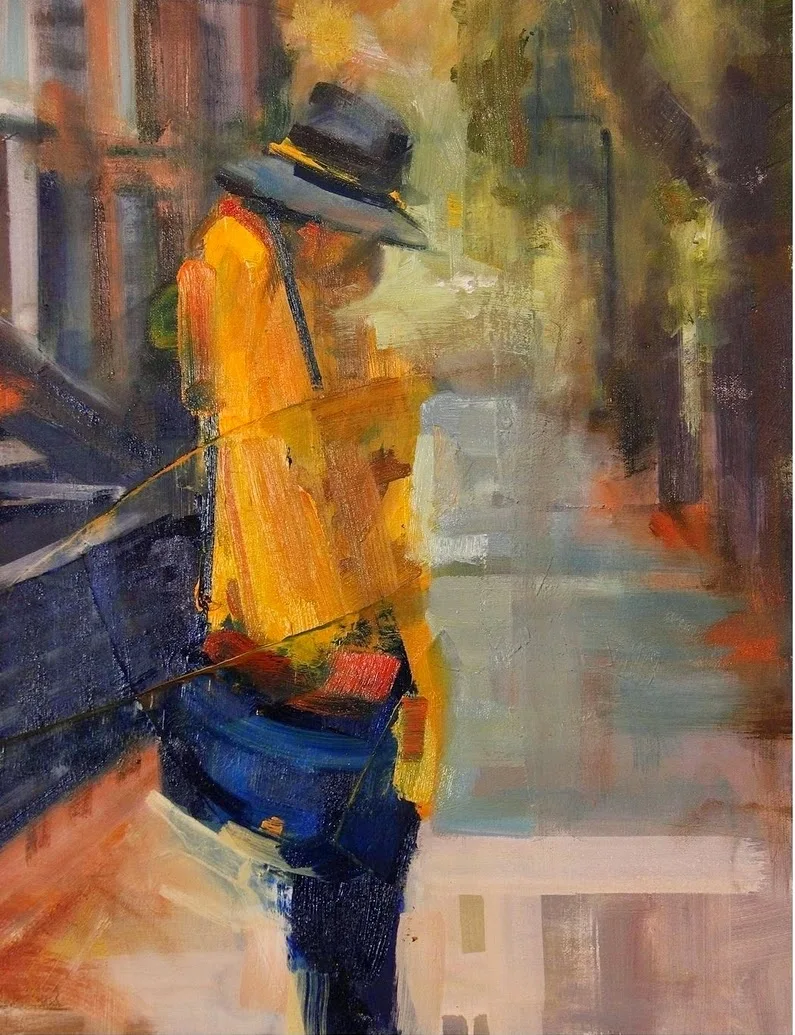 A predominantly female body she explores in all its forms: faces, busts, fragments of body... "The narrative is not essential for me. I enclose the body of my subjects in abstract structures, diagonals, verticals. I use perspective lines as if they were the backbone of my new models". Nushka The artist plays on contrasts: sensitive, sensual, timeless topics. And vivid, dynamic and contemporary brushstrokes. | © Saatchi Art.