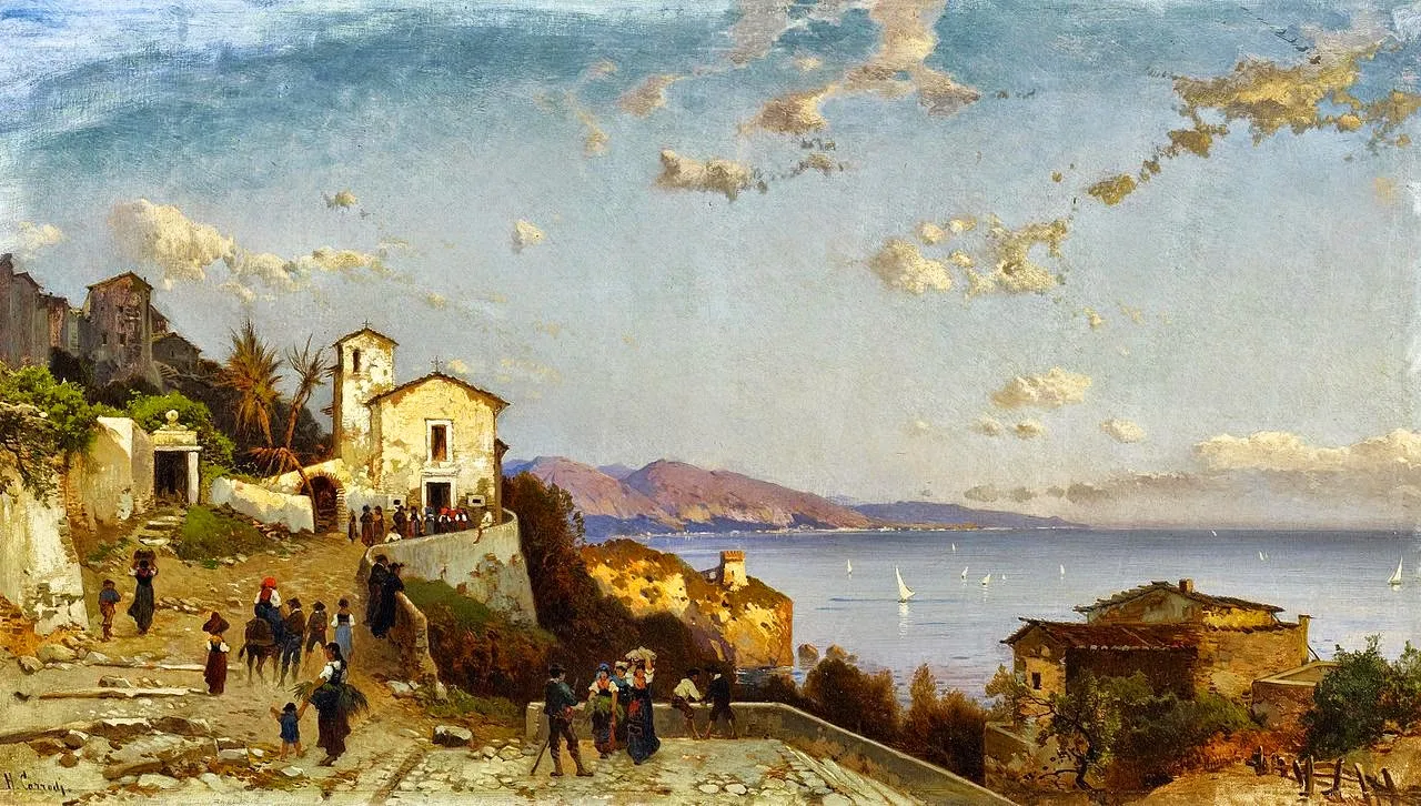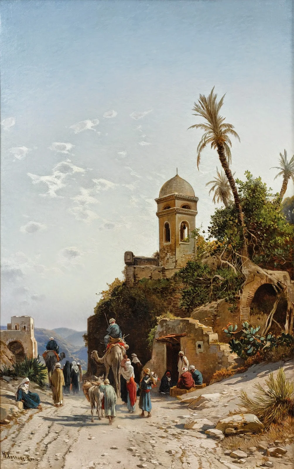 From 1876, he used to spend winters in Roma and summers in Baden-Baden, where the German aristocracy commissioned his works, as Kayser Wilhelm II who acquired his «Dôme du Rocher de Jerusalem».