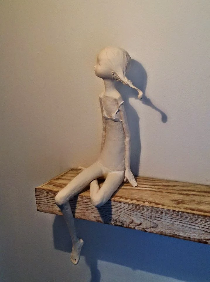 However, white clay is one of her favourites.From the universe of her modelled clay pieces, the innocent “lolitas”, with their tender eyes and big feet, are unique, and enchant the observer.