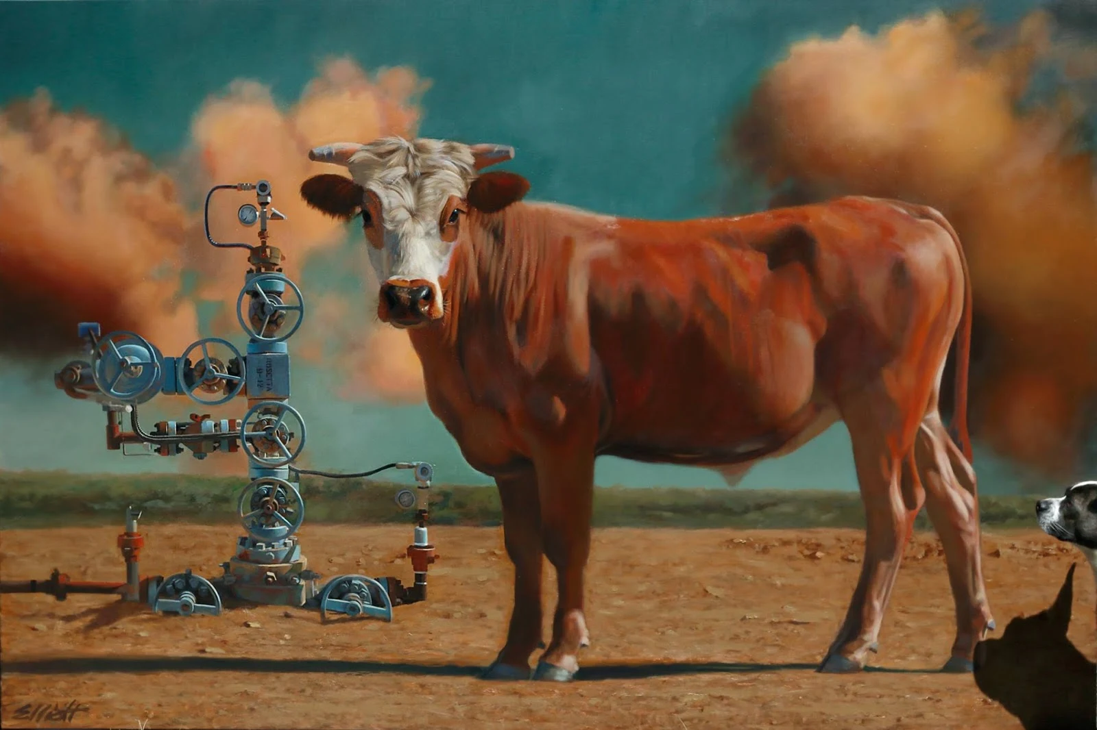 Teresa Elliott è un’artista del Texas specializzata nei dipinti ad olio. Che sia originaria di quelle zone d’America lo si vede chiaramente nei suoi disegni, dove spesso sono immortalati mucche e tori allo stato brado, e che abbia trascorso ben 25 anni come illustratrice freelance in Dallas lo si vede altrettanto bene, vista la qualità delle opere che sforna.