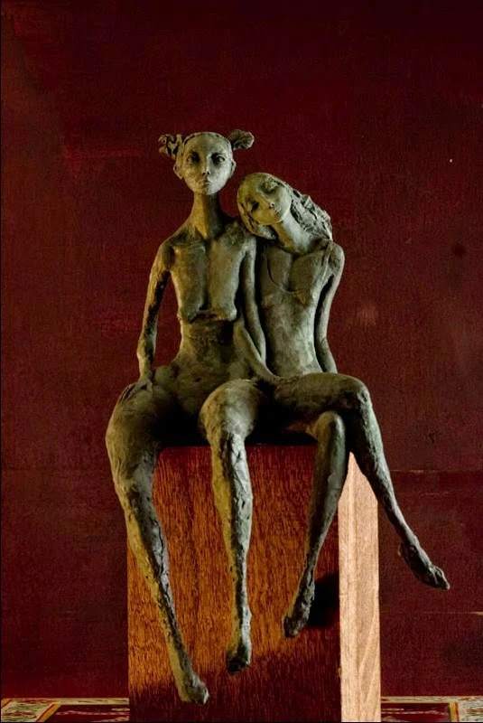 This set of sculptures is from Les "petites bonnes femmes"/ The Little Women series, which has been described by critics as a “poetic encounter….[meant] to make us travel the path of women from adolescence to maturity and through the various emotions and moods that drive these generations of women".