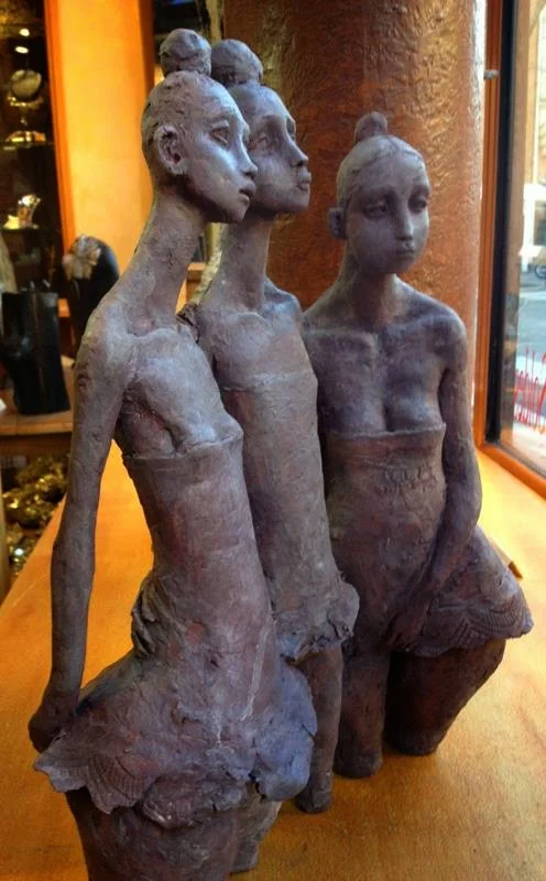 Valérie Hadida è una scultrice e pittrice Francese contemporanea, che lavora principalmente in bronzo e argilla. Questo set di sculture proviene dalla serie "Les petites bonnes femmes" / The Little Women, che è stata descritta dalla critica come un "incontro poetico ..." [inteso] per farci percorrere il percorso delle donne dall'adolescenza alla maturità, attraverso le varie emozioni e stati d'animo che guidano queste generazioni di donne ".
