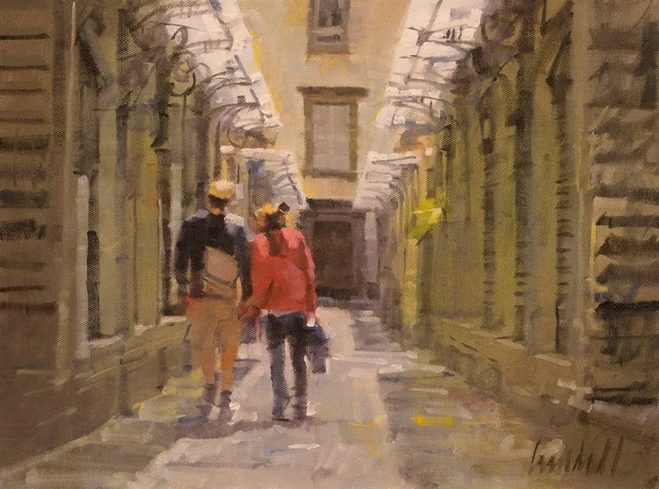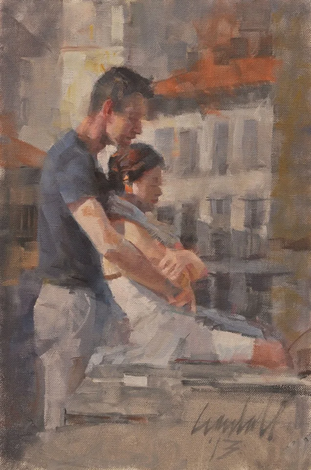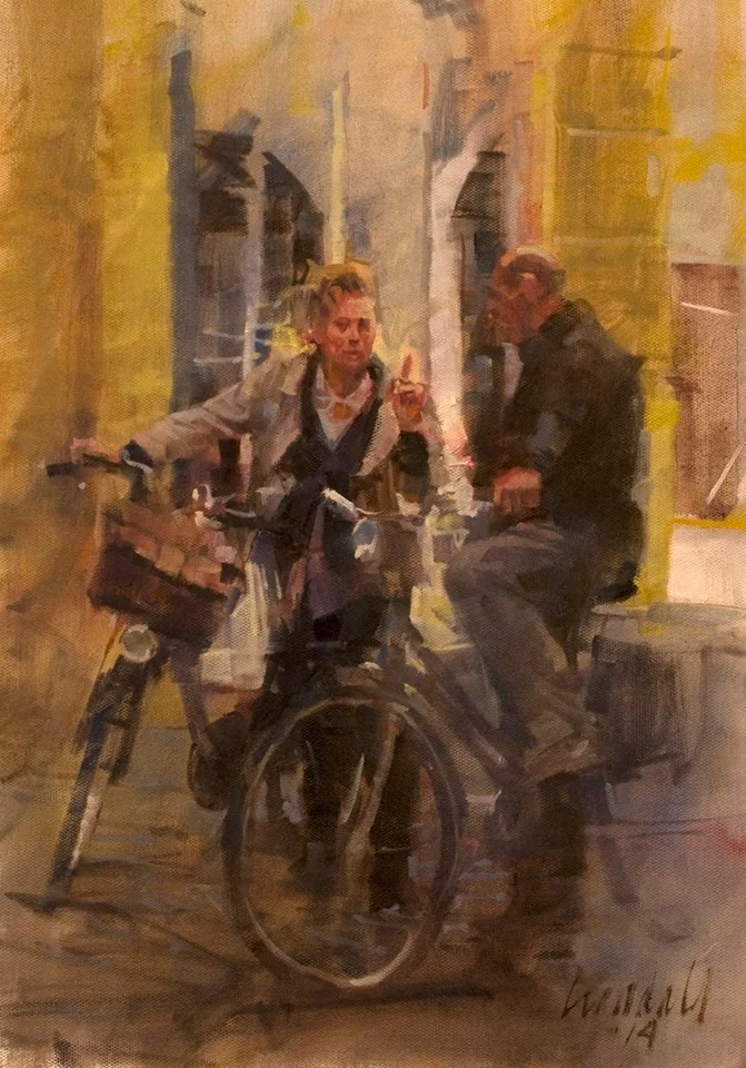 An ongoing series of paintings depicts life in his maternal grandfather's hometown of Lucca in northern Tuscany, where he regularly visits.