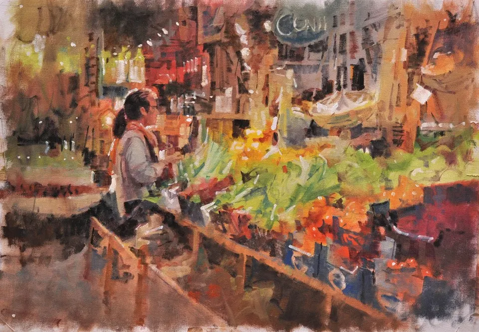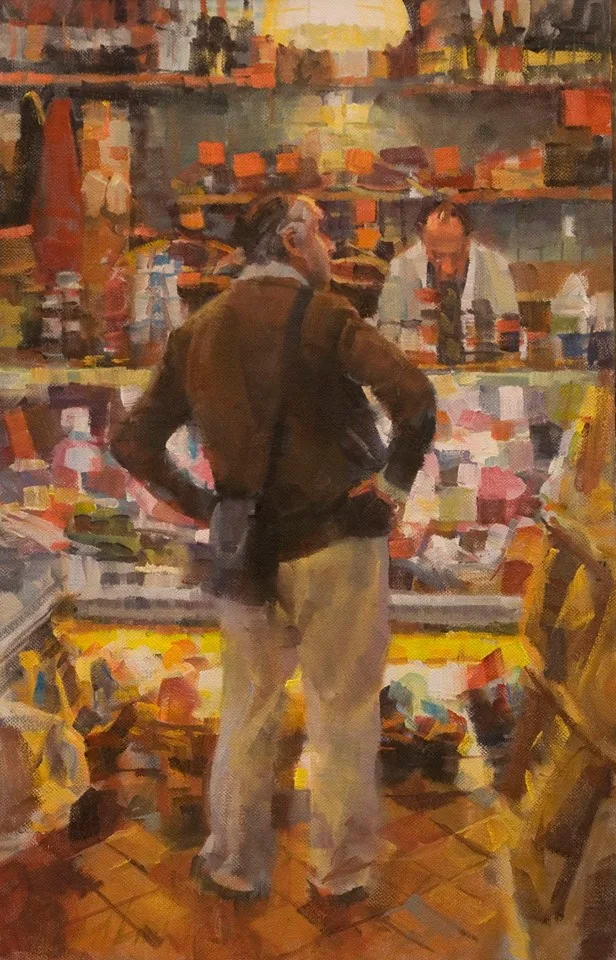 He finds subject matter in everyday life, and is always looking for an intriguing play of light, or the unstaged gestures of people at work and at play.